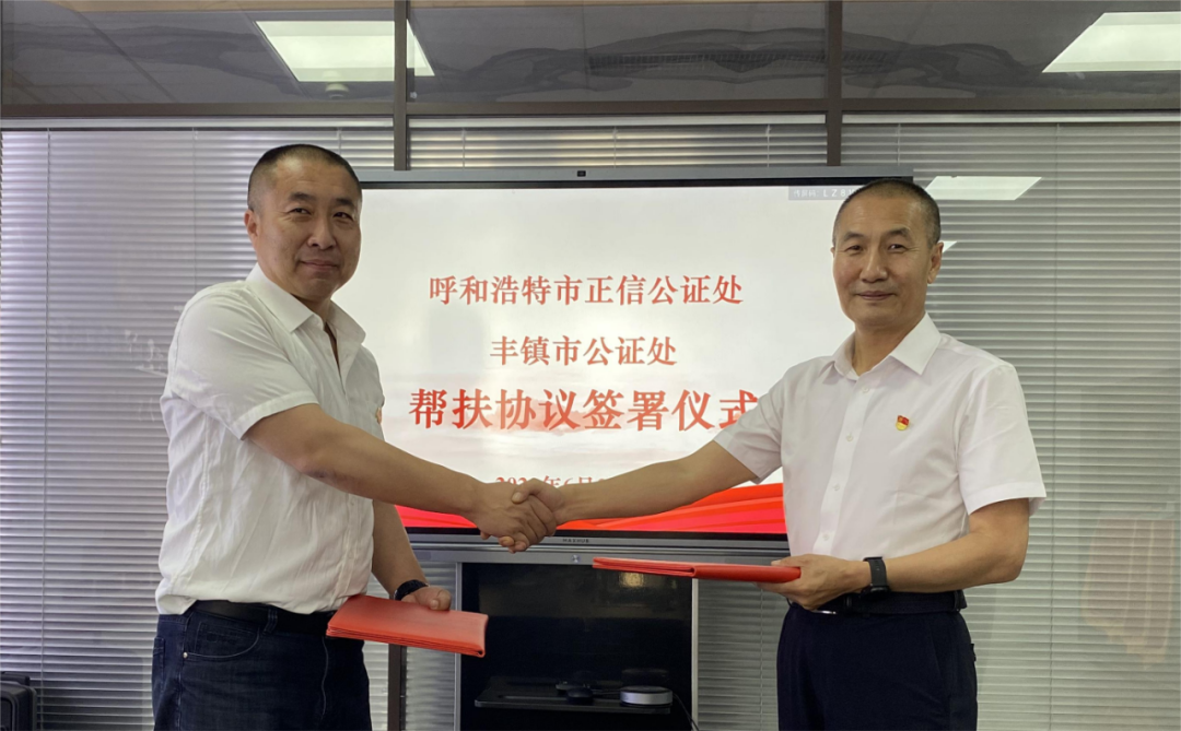 座谈会后,正信公证处与丰镇市公证处签署帮扶协议,双方就在今后工作中持续沟通,互学互鉴,各取所长、相得益彰,加强公证行业人才培养,不断提升公证服务水平等多方面达成合作,共同形成两地公证机构相互学习机制,为双方进一步开拓业务领域,提高服务能力提供新思路。