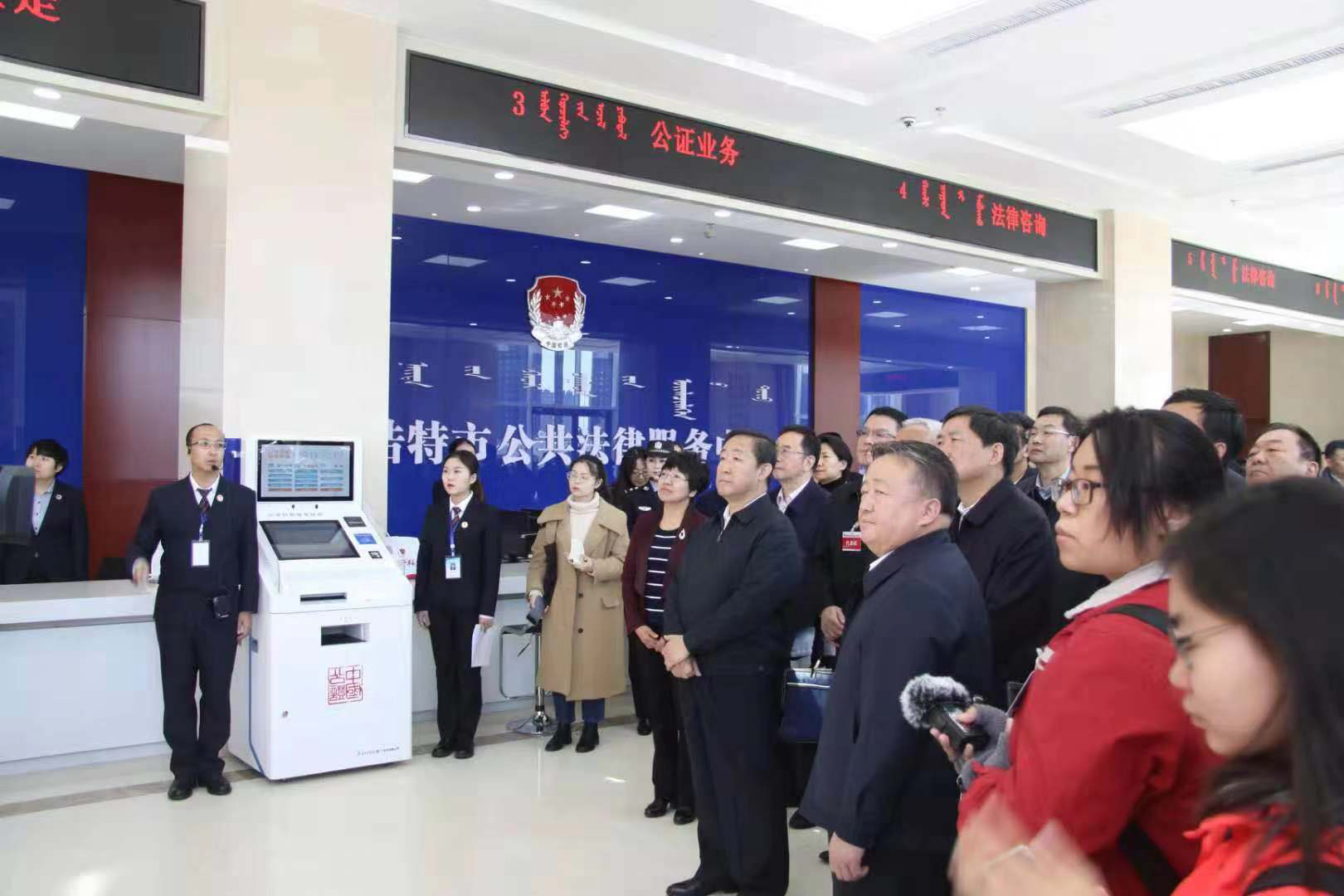 10月28日,司法部全国司法行政信息化工作推进会在内蒙古呼和浩特市召开。会议期间,司法部部长傅政华、副部长熊选国和与会代表听取了呼和浩特市正信公证处关于办理公证“最多跑一次”的演示汇报,参观了呼和浩特市正信公证处推出的公证上门办证专用车,对专用车的性能、办证方式进行了解和询问。傅政华部长还对上门办证专用车的办证方式给予了肯定和好评。