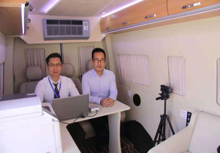 上门办证专用车是由呼和浩特市正信公证处推出的国内首台上门办证专用车。专用车除安排专业的办证人员外,还配有电脑、摄录像高清设备、彩色打印复印一体机、执法记录仪、对讲机、便携式身份人脸识别仪等科技含量较高的专业技术设备。这些专业技术设备可保障公证人员与公证处总部实现即时联系并进行联网运行作业,实时传输画面、远程跟踪、指导办理公证业务。特别是电子签章的在线使用,让出具公证书更加高效、便捷。专用车的使用把传统的公证办证模式变为公证机构在线上一次性、一体化实现从受理、审批到完成出证的全过程。