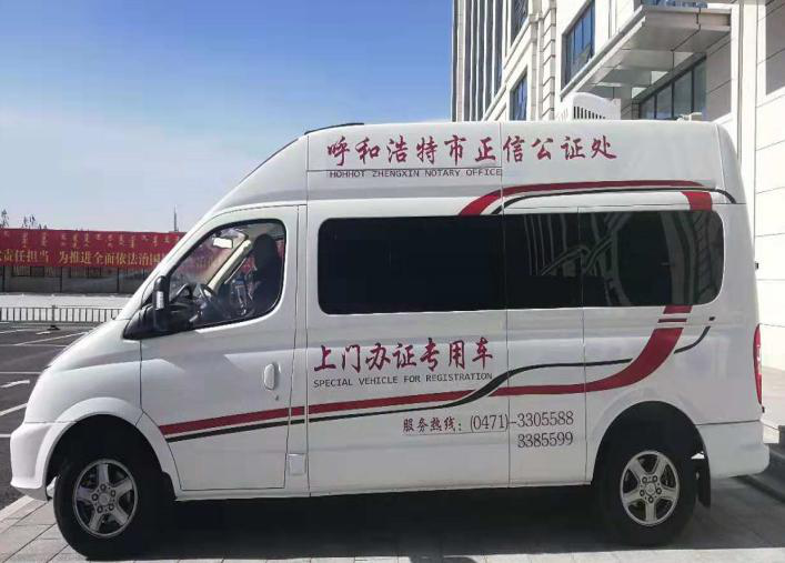公证上门办证专用车是呼和浩特市正信公证处进一步深化公证行业 “放管服”改革的一大创新举措,有效解决了公证服务人民群众“最后一公里”的问题,使部分公证业务的办理实现了从“最多跑一次”到“一次也不跑”,极大地满足了人民群众的公证法律服务需求。