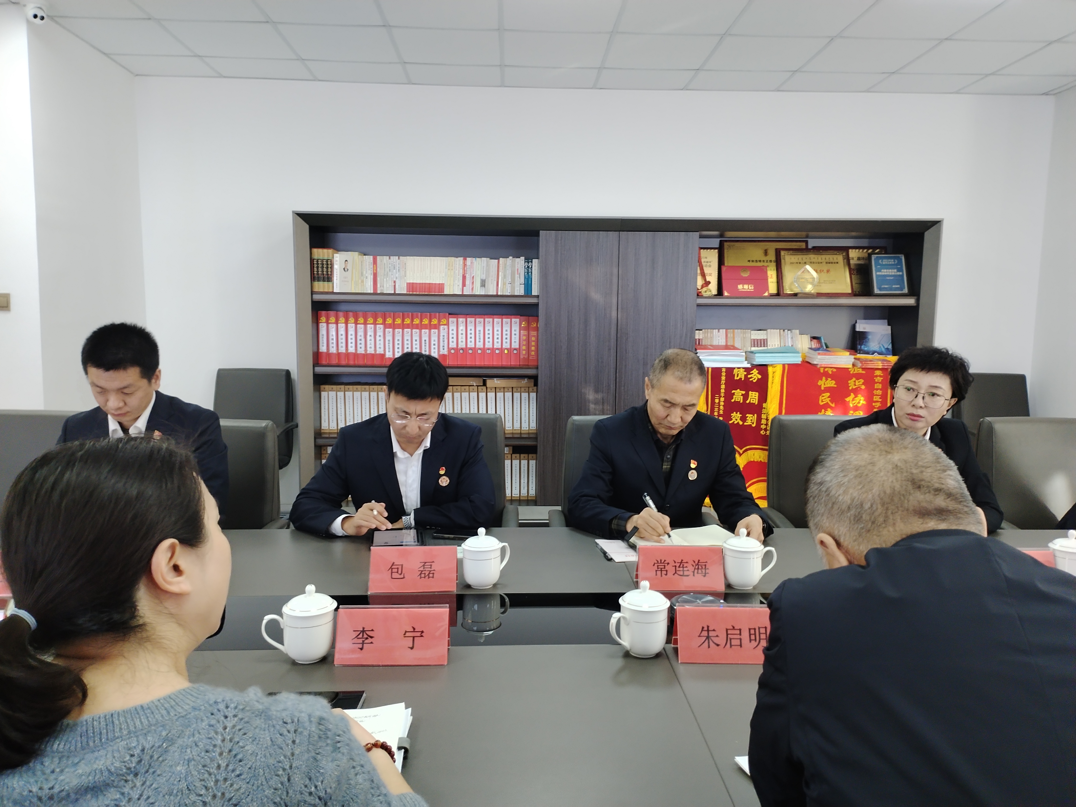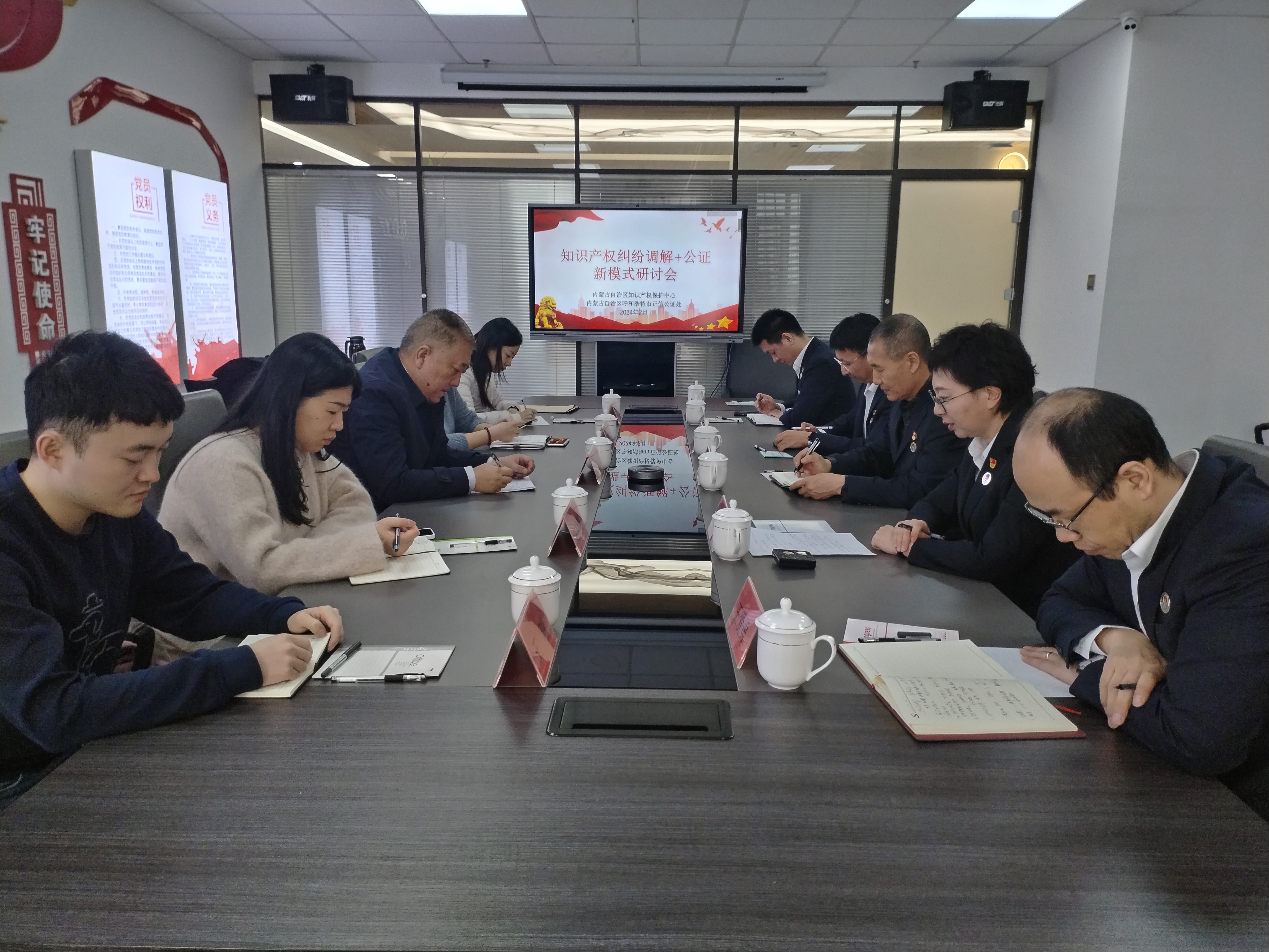 为进一步拓展知识产权公证服务内容,充分发挥公证在知识产权纠纷多元化解工作中的作用,积极探索知识产权纠纷人民调解工作,营造稳定公平透明的法治化营商环境,近日,内蒙古自治区知识产权保护中心维权援助负责人朱启明,快速维权部部长李宁一行莅临正信公证处召开知识产权纠纷“调解+公证”新模式研讨会议。正信公证处主任常连海、执行主任包磊,副主任孙宏霞和有关部门负责人参加会议。