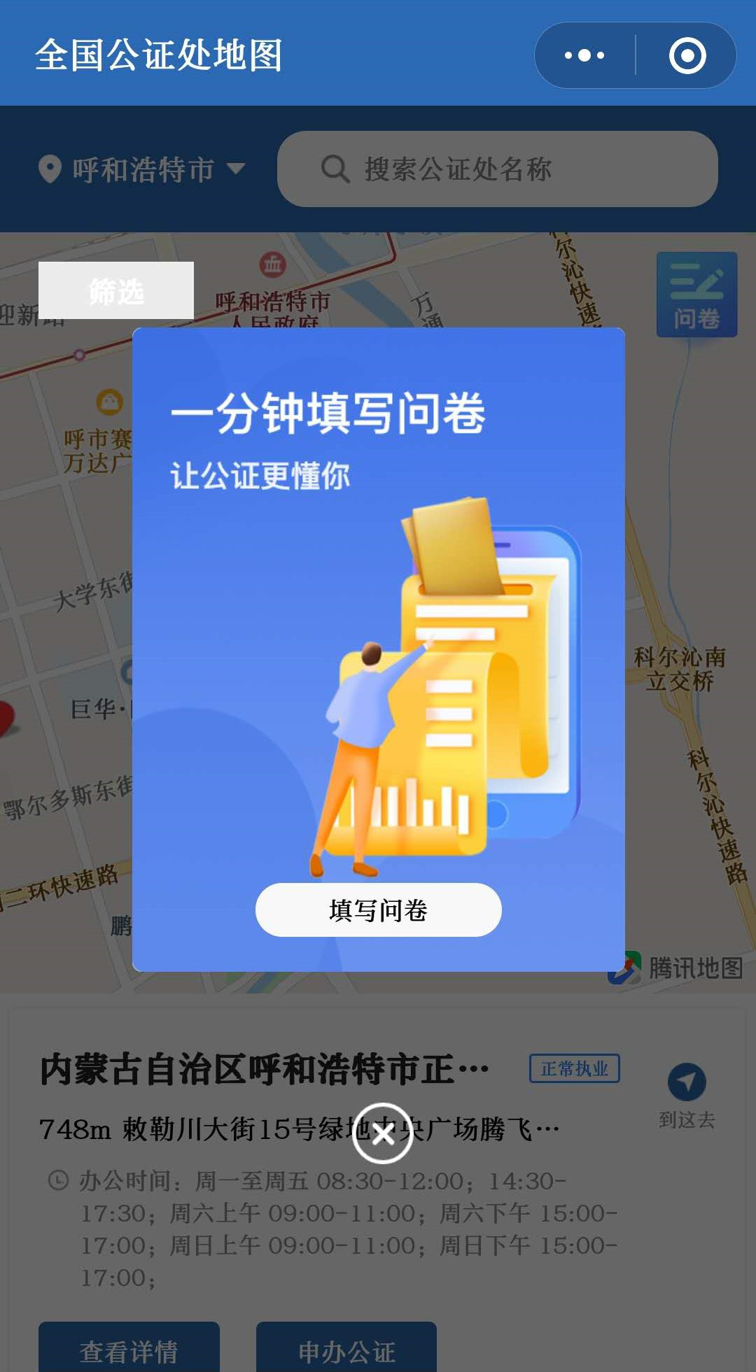 通过微信小程序“全国公证地图”或扫描下方二维码填写调查问卷,对我处的